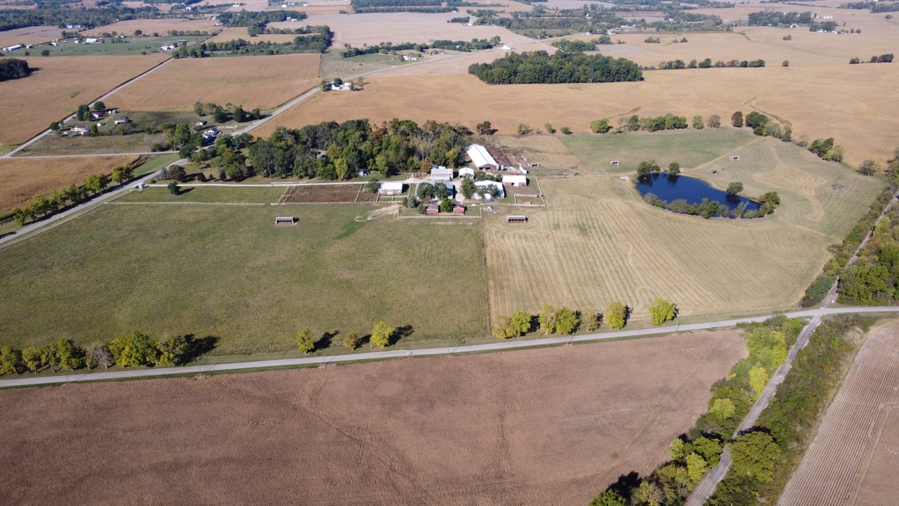 Located near Losantville, Indiana, this 56.77± acre farm is being offered at auction. Currently operating as a turnkey livestock farm, it combines residential living, agricultural infrastructure, pasture, and water features. The property features a 1,200± sq ft home with three bedrooms and two bathrooms, along with a detached garage for storage or workshop use. In addition, there is nearly 1 acre under roof across nine separate barn structures, each suited to a variety of farm or livestock purposes. One barn offers independent living quarters, complete with a bedroom, kitchen, living room, and bathroom, which can serve as guest housing or space for farm workers. The property features a fenced pasture that is actively used and well-maintained, with multiple livestock shelters, horse stalls, and grain bins supporting ongoing operations. The fencing is in strong condition, allowing for continued use without requiring major updates. A recently revitalized 2.3± acre pond provides water for livestock and other recreation possibilities! The farm benefits from road frontage on both the south and east sides, improving access for farm traffic and equipment. As well as easy access to the Cardinal Greenway Trail. Internal roads and trails further improve navigation throughout the property. This property is currently a working livestock farm, but its layout and infrastructure may accommodate multiple uses. Options could include continued livestock operations, equine activities or a small-scale crop use.